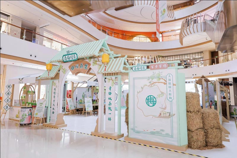 5月13日-14日,統一青梅綠茶梅園茶集在金沙印象城和龍湖杭州西溪天街舉辦梅園茶集快閃活動。此次活動吸引了不少小伙伴,齊齊到現場體驗穿越千年的國風盛宴。